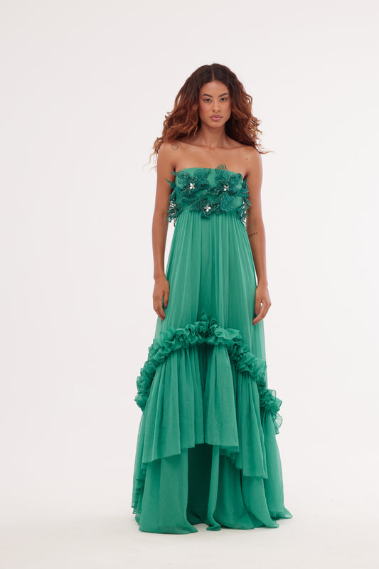 Vestido Longo Silky Grace Aura Verde Escuro – PatBo