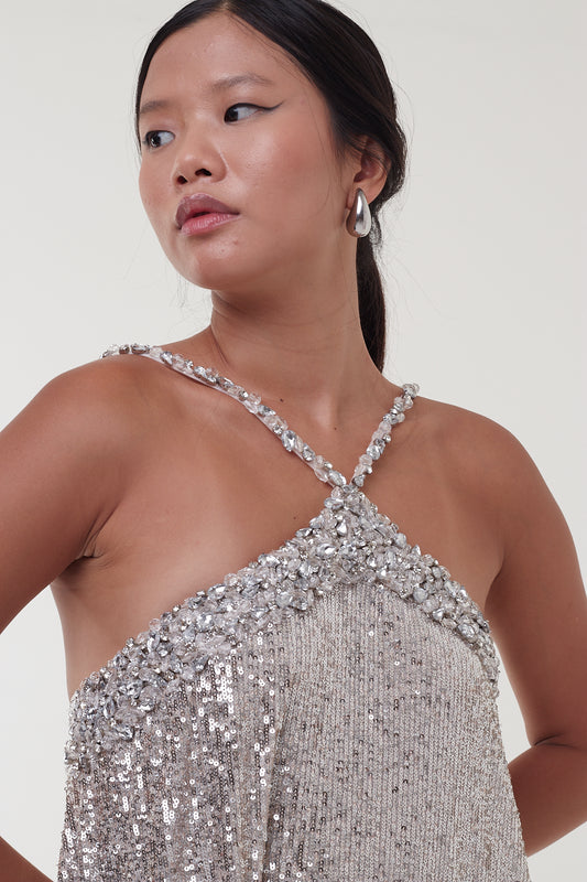 Vestido PatBo Brilho Dourado e Prata